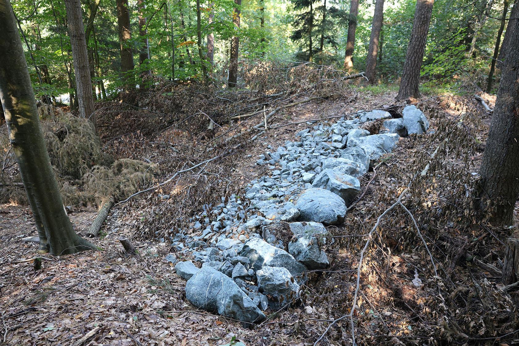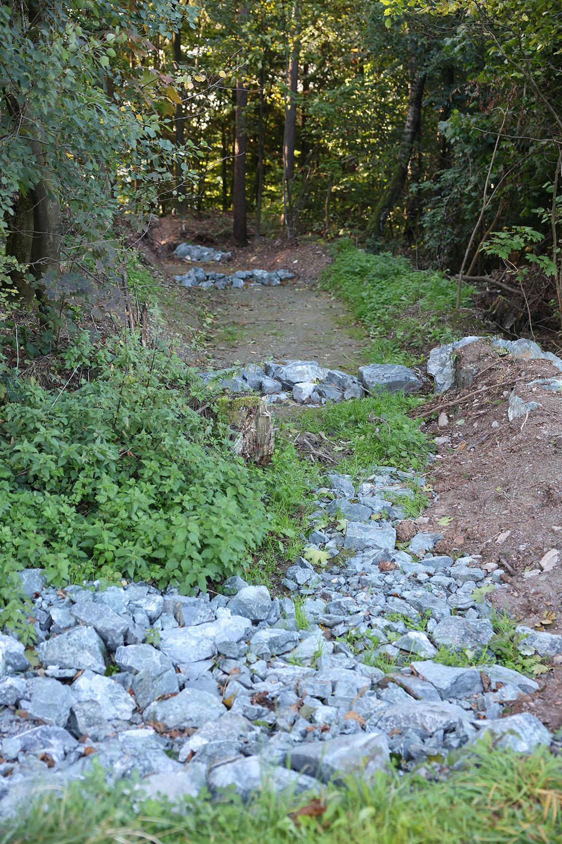 Die neu geschaffenen Strukturen ermöglichen es, Oberflächenwasser temporär zurückzuhalten und gleichzeitig mitgeführte Sedimente aus dem Wasserstrom abzusetzen. Dadurch wird nicht nur das Abflussgeschehen bei Starkregen gedämpft, sondern auch die Grundwasserneubildung in der Waldfläche verbessert und der Eintrag von Feinmaterial in die Gewässer reduziert. Zusätzlich wurden die gefällten Bäume in der Waldfläche als Totholz belassen. Sie verlangsamen den Abfluss und schaffen zugleich Lebensraum für zahlreiche Tierarten.