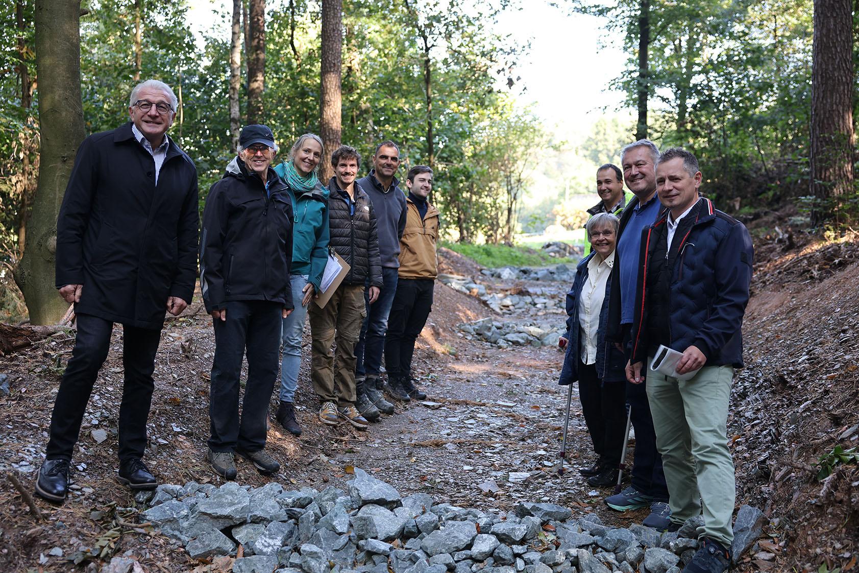 Ihre Feuer – oder besser Wassertaufe hat die Maßnahme bereits bestanden, erzählt Erster Bürgermeister Holger Bär: „Beim ersten Starkregen stand ich mit dem Regenschirm und Fotoapparat hier oben und war begeistert, dass das Wasser zum allergrößten Teil bereits im Wald gehalten wurde“.