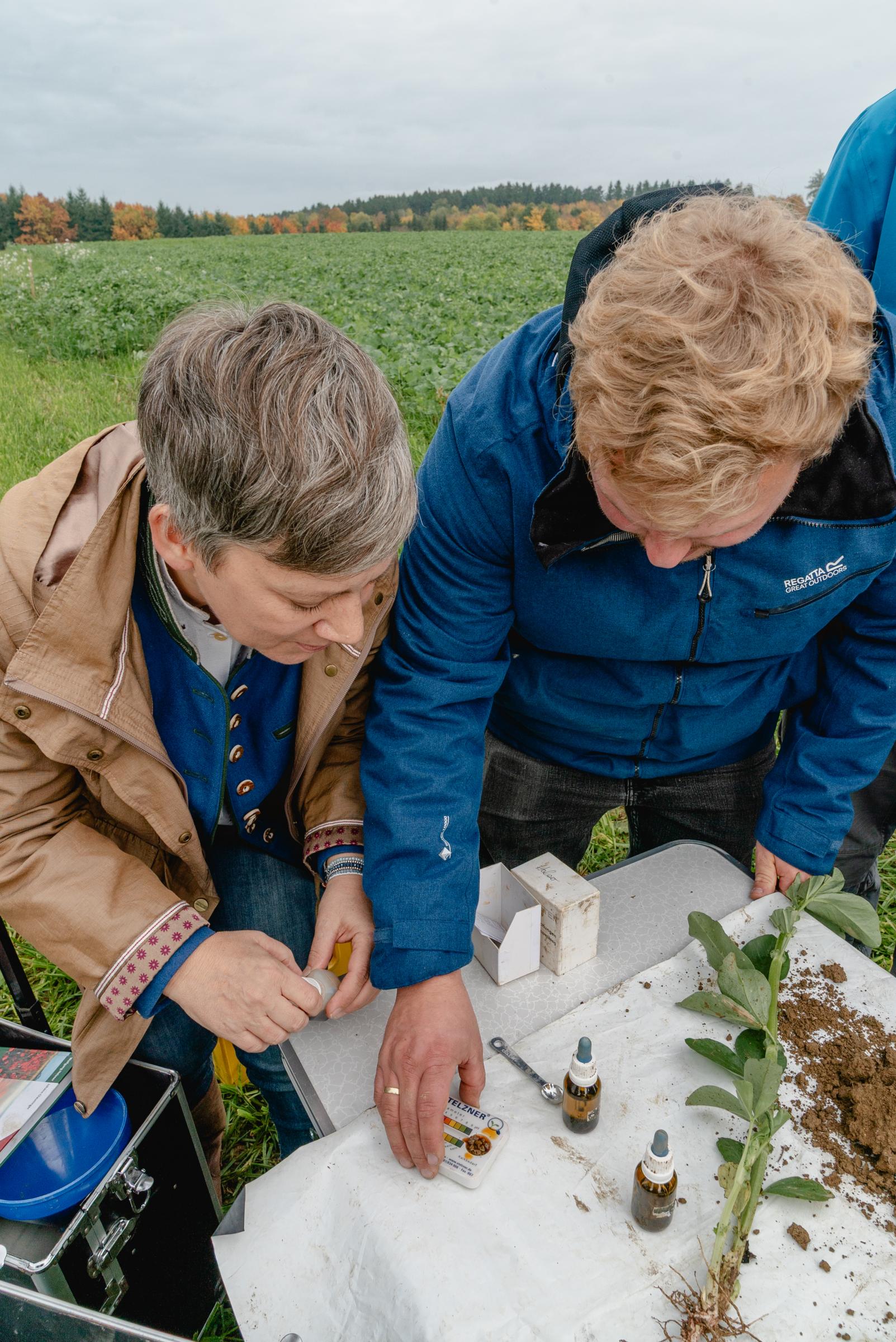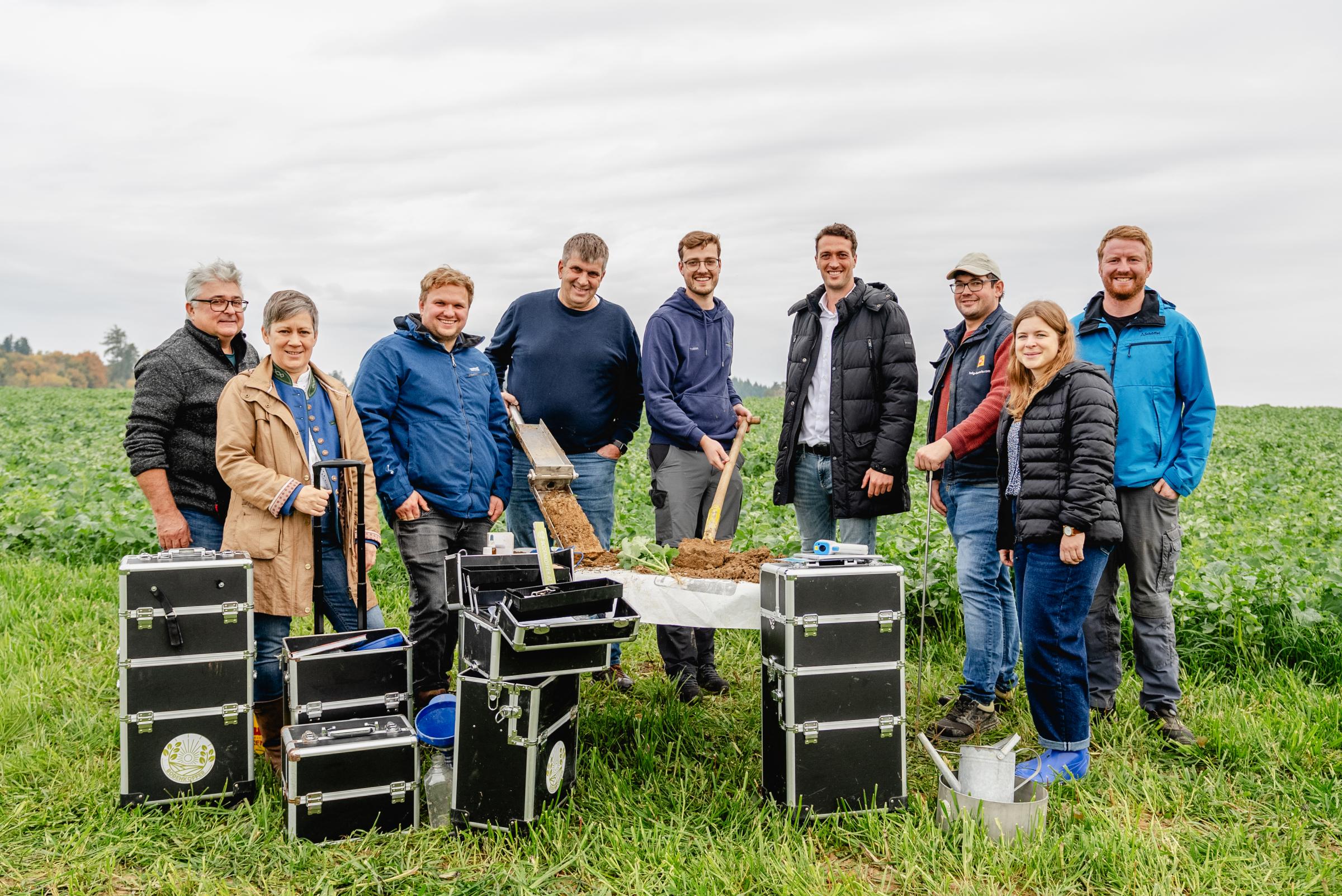 Über ein LEADER-Projekt mit Österreich schafften sie für jeden einen solchen Koffer an – zwei weitere stehen zum Ausleihen am AELF-Standort Landau – und seither sind sie als Bodenbotschafter unterwegs. Denn natürlich benutzen sie die Koffer und ihren Inhalt nicht nur selbst – sie bestreiten Feldtage, Fortbildungen, Öffentlichkeitsarbeit – und haben eine eigene Schau- und Demofläche für Zwischenfrüchte angelegt.