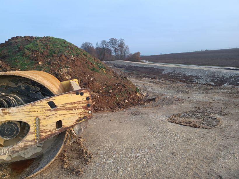 Es verdeutlicht, warum das Becken erforderlich ist: Ein solcher Boden neigt zum Oberflächenabfluss. Es ist auch der Grund, warum die Baustelle bei dieser Witterung planmäßig ruht: Auch für die Baumaschinen ist die Arbeit leichter , wenn der Boden weniger schmierig und damit schwierig ist. Aber die Arbeiten sind so weit fortgeschritten, dass einer Fertigstellung zur Gewittersaison 2026 nichts im Wege steht.