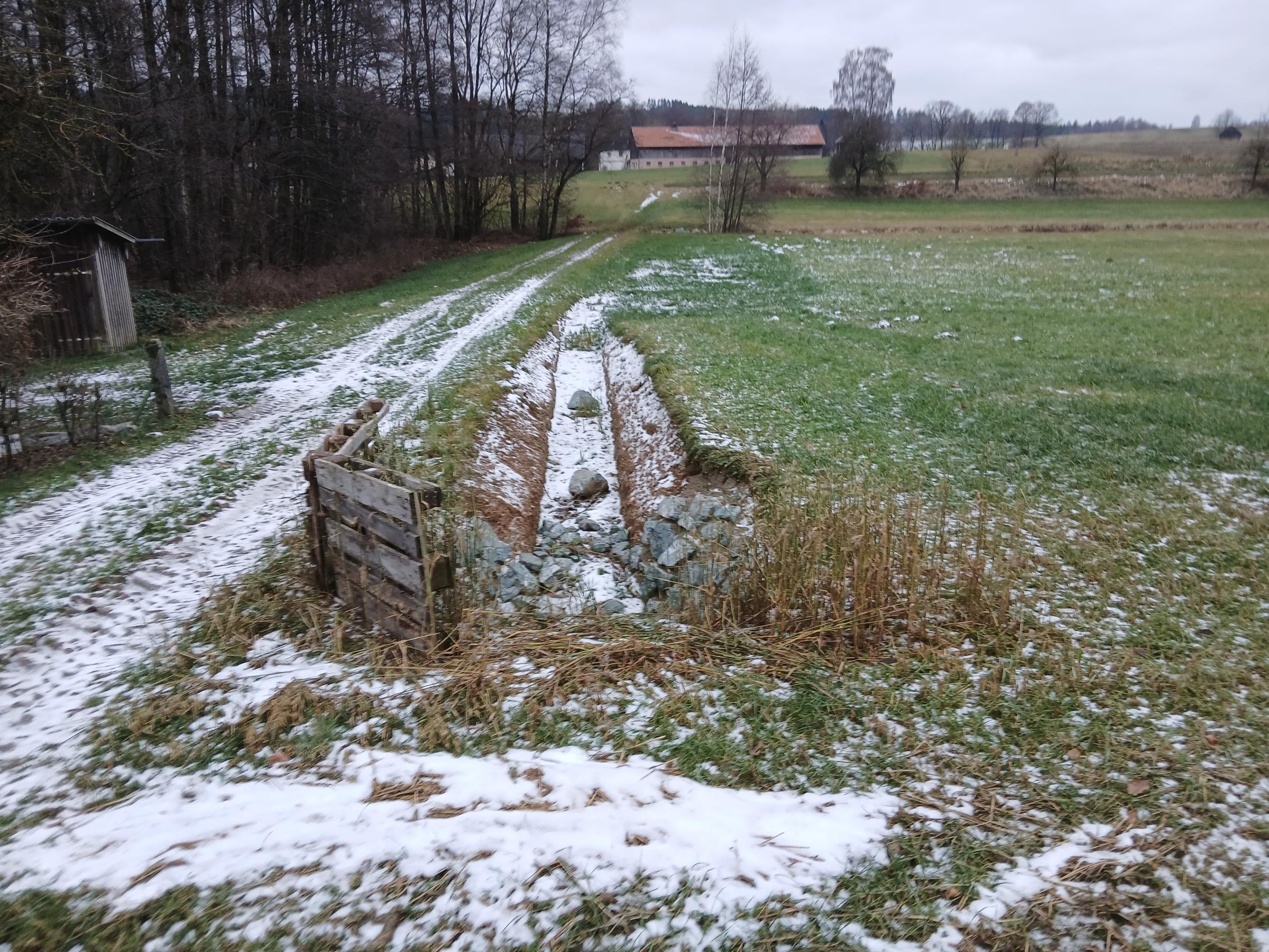 "Das Machbare Jetzt tun!" Ganz nach diesem Motto von boden:ständig wurde die Maßnahme umgesetzt: Auch wenn die im Gesamtkonzept im oberen Bereich des Einzugsgebietes angedachten Maßnahmen natürlich die Wirkung nochmals verbessern, wurde diese erste Maßnahme gleich umgesetzt, da hier breits das Einverständnis der Grundstückseigentümer vorlag. Die weiteren Maßnahmen sollen zu einem späteren Zeitpunkt folgen.
