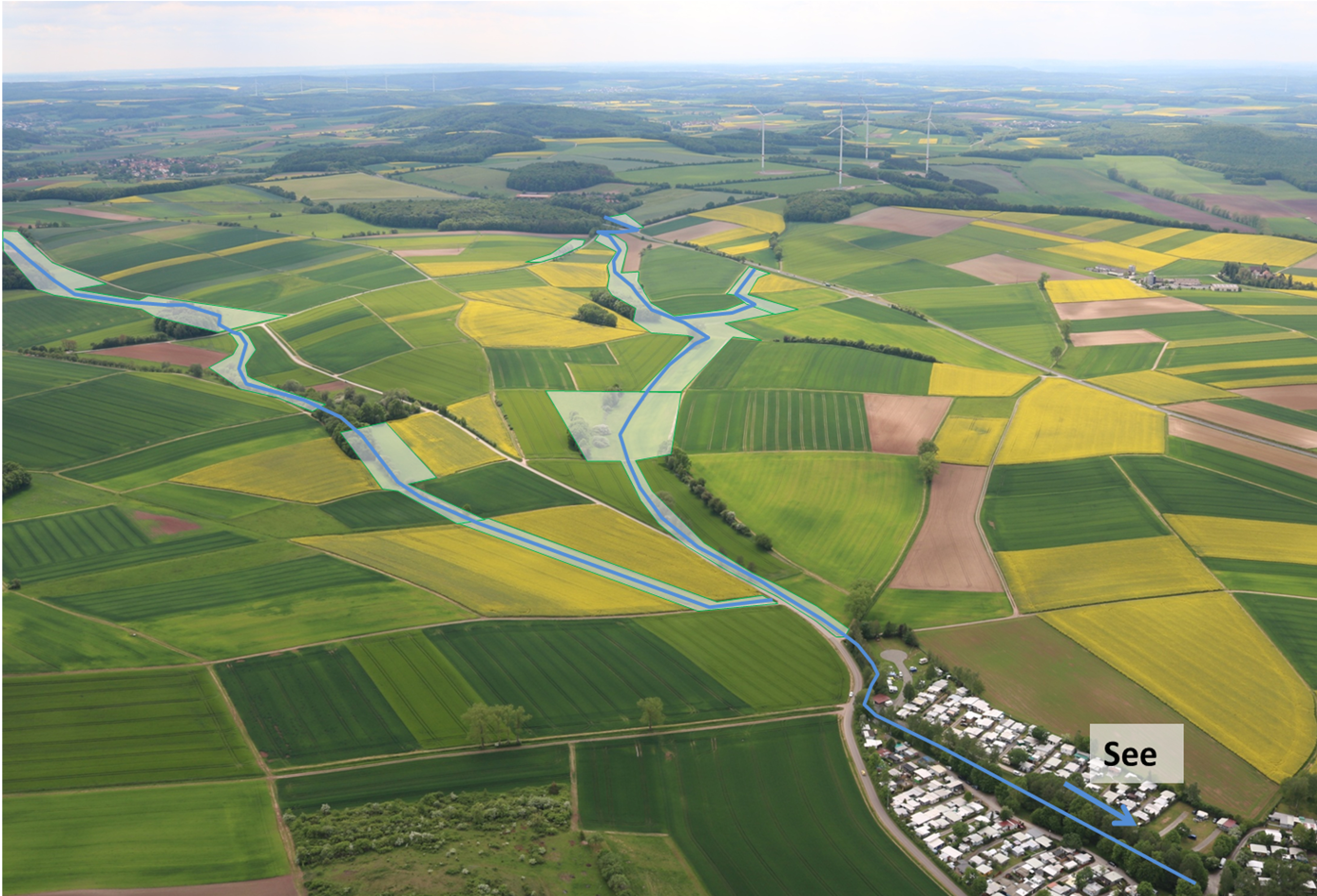 Mithilfe von Agrokraft (beauftragt von der Ländlichen Entwicklung) entwickelten und realisierten Behörden und Landwirte kombinierte Maßnahmen um die Eintragswege des Badesees in Sulzfeld langfristig zu reinigen.